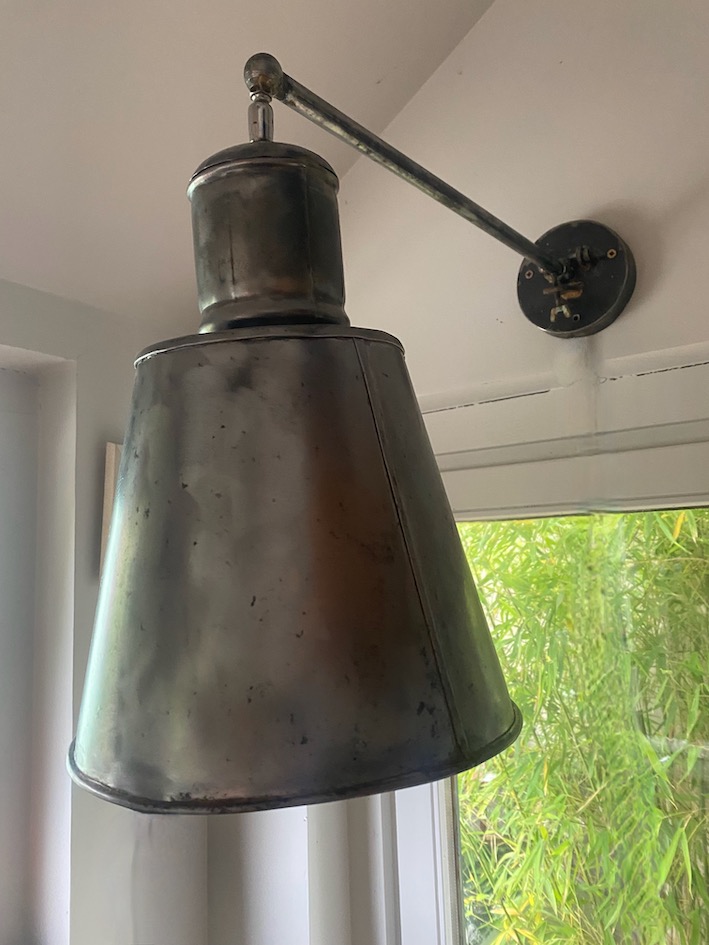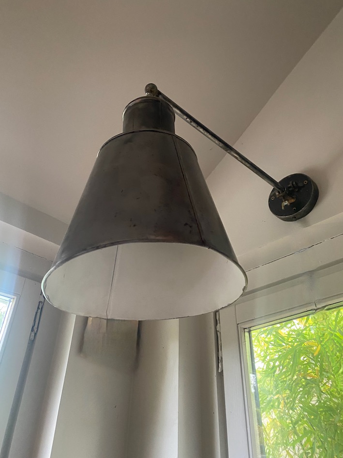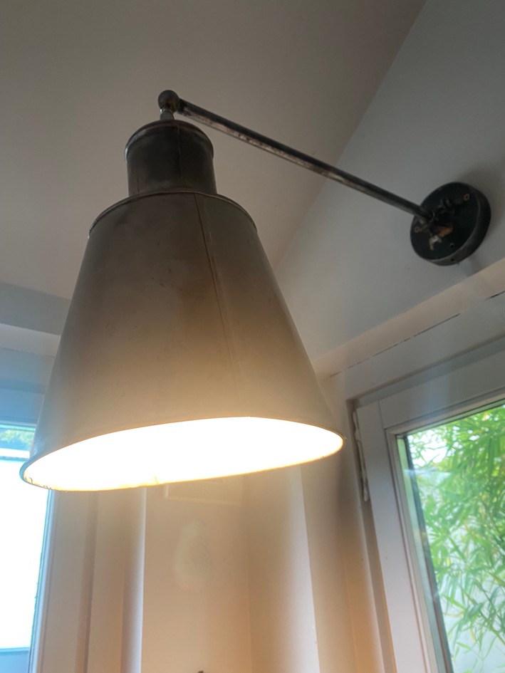 La branche fixée sur un socle, se termine par un abat-jour articulé.