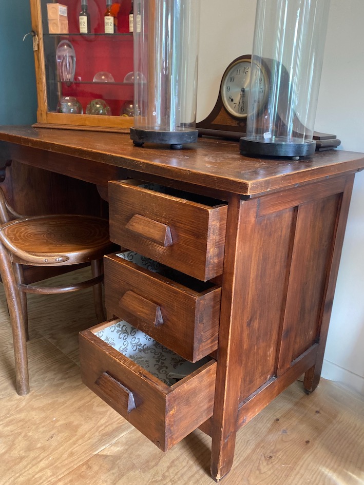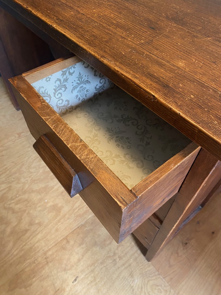 des 3 tiroirs est tapissé de papier peint d’origine.