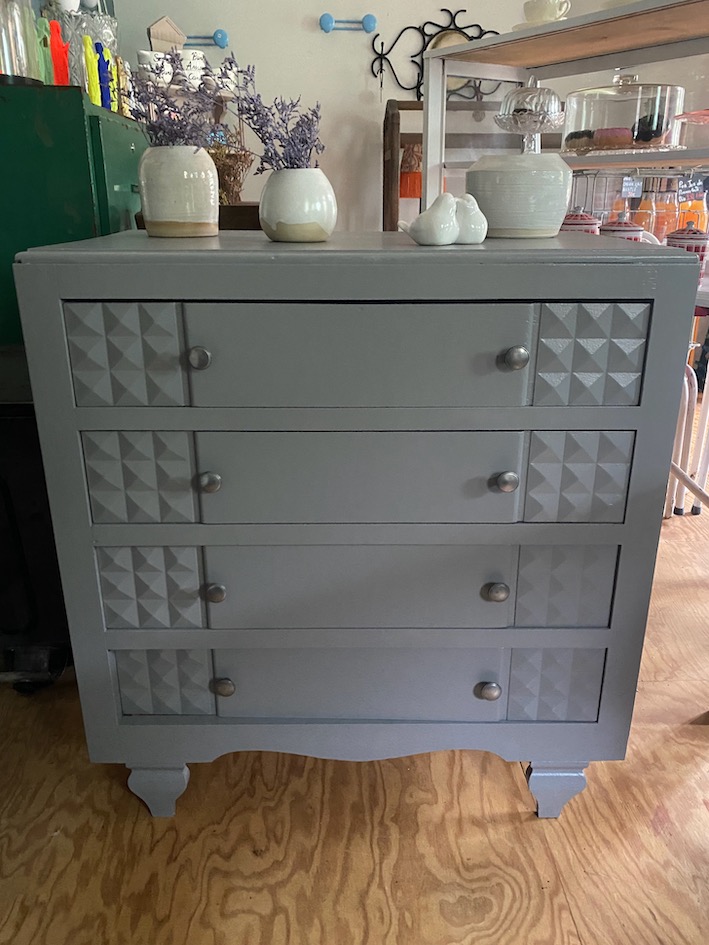 avec ses motifs « pointe de diamant » sur les tiroirs.
