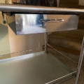 Sur roulettes, elle est entièrement en inox avec 2 plateaux