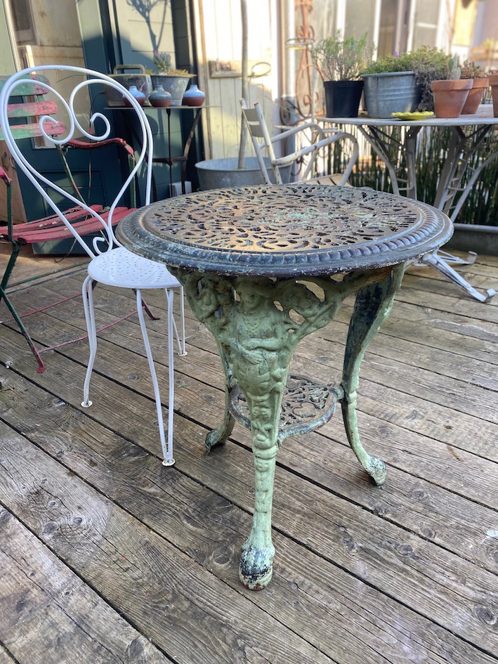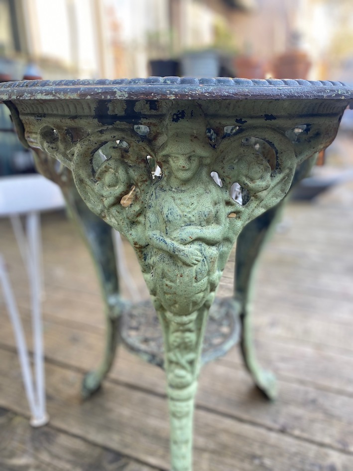 Vous êtes ici : Accueil1 / Boutique en ligne2 / Le mobilier3 / Les tables vintage4 / Guéridon de jardin en fonte 1940