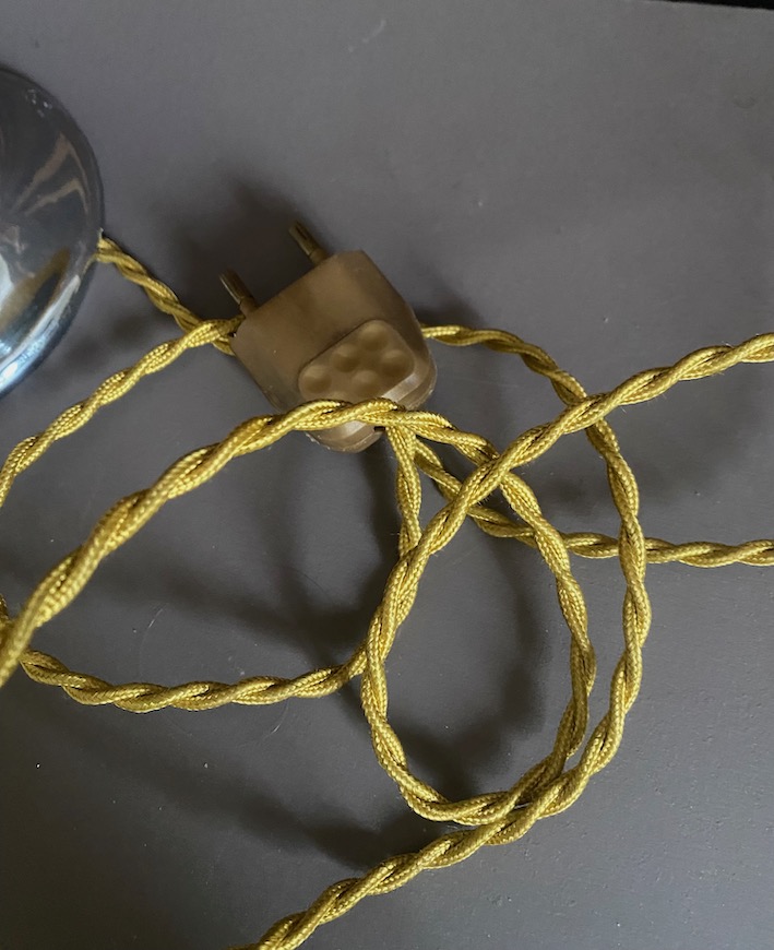 L’électricité est neuve, le fil torsadé doré brillant est agrémenté