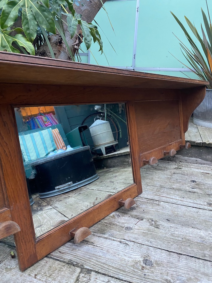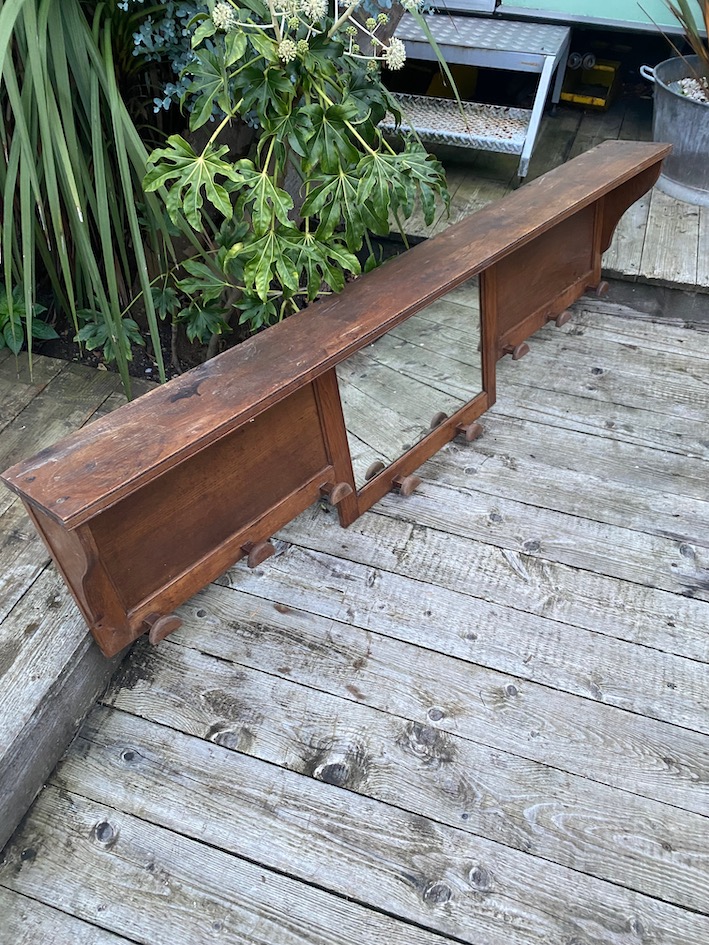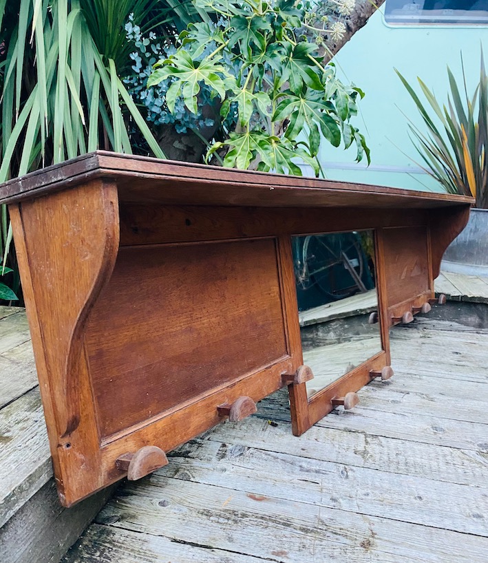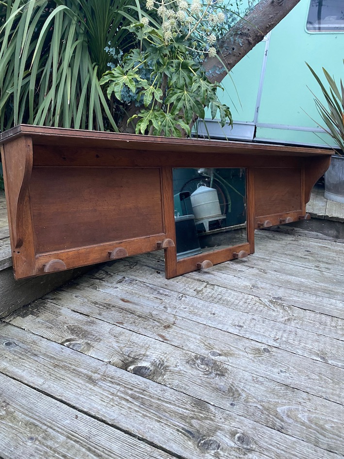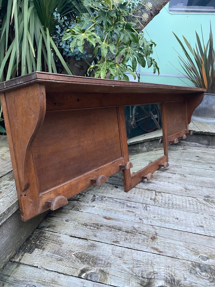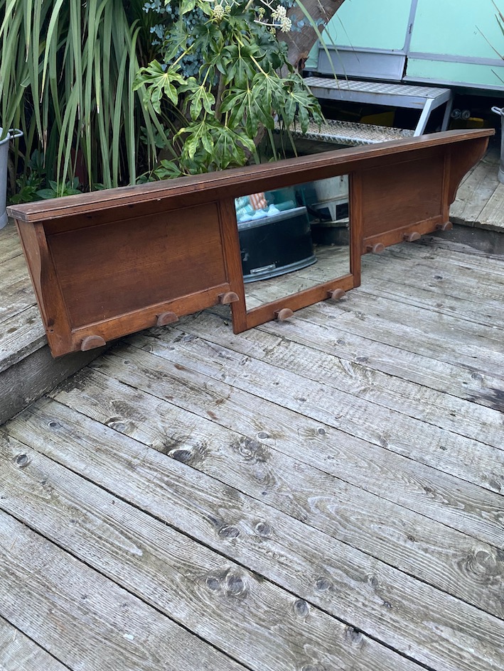 Tout en bois avec son miroir au milieu, il a 8 patères.