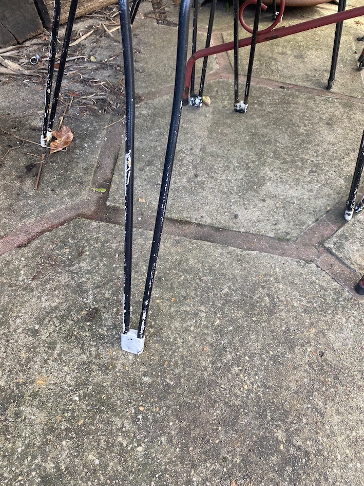 Les 4 chaises classiques ont un dossier en « coeur », leur piètement