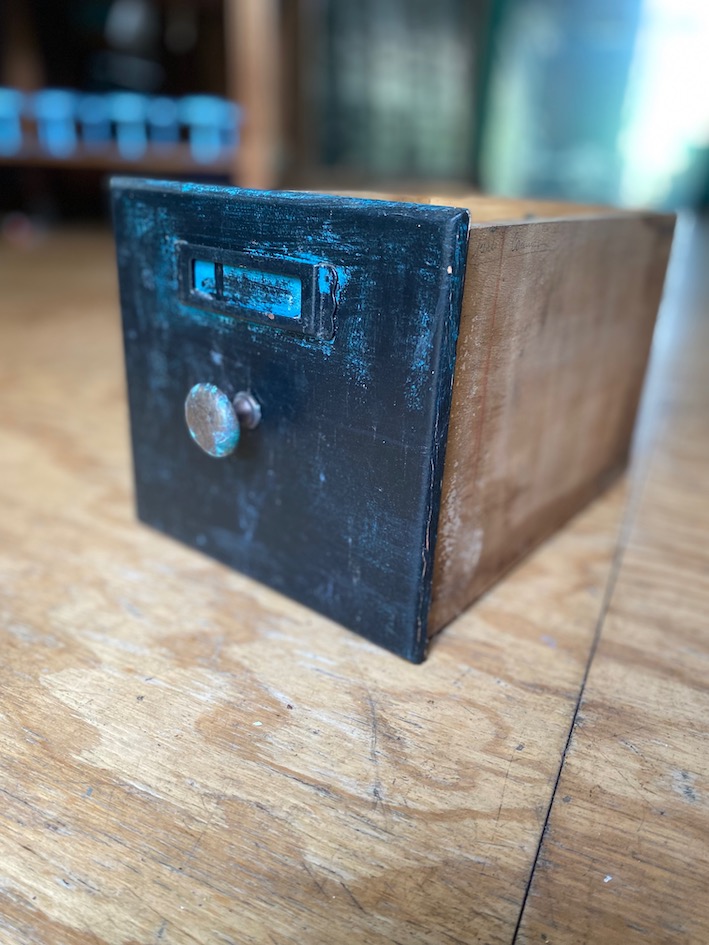 ancien meuble de grainetier d’une jardinerie.